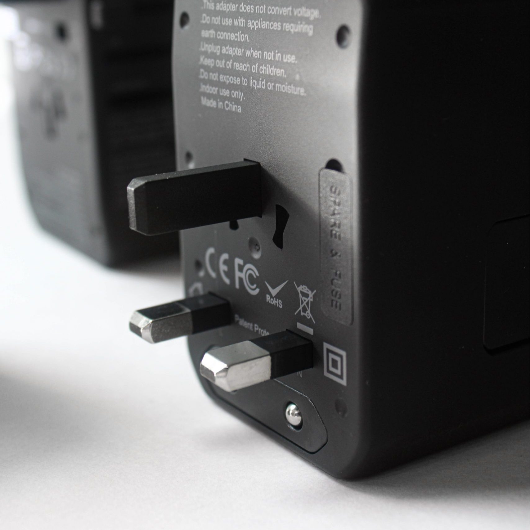 b. Pin part: It has 4plugs in one. “UK plug(Three flat pins), EU plug, US plug, AUS plugs”